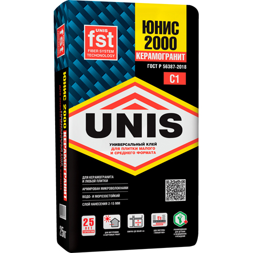 Смесь сухая клеевая UNIS 2000 (25 кг) (1поддон-48шт)