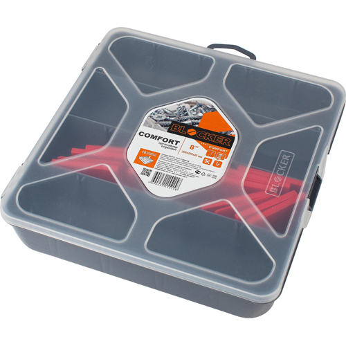 Органайзер создан специально для оптимальной организации пространства. Внутреннее деление на отсеки делает удобным размещение внутри блока деталей, которые необходимо отделить друг от друга. Благодаря съемным перегородкам можно легко регулировать количество и размер ячеек. А прозрачная крышка позволяет увидеть содержимое, не открывая блок. Подходит для хранения метизов, а также, швейных принадлежностей.