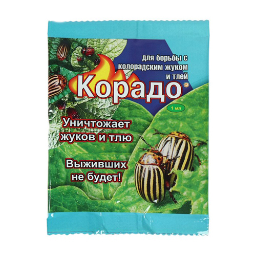 «Корадо» гарантирует практически 100% гибель взрослых жуков и личинок всех возрастов, а также гибель вновь отрождающихся личинок и защищает картофель длительное время: в течение 3-4 недель после опрыскивания. Препарат не проникает в клубни картофеля и не накапливается в них.