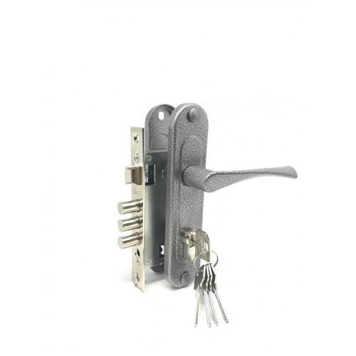 Материальное исполнение Корпус, засов - сталь, Защелка - сплав цинковый, Ручки - сплав алюминиевый, Накладки - сталь.