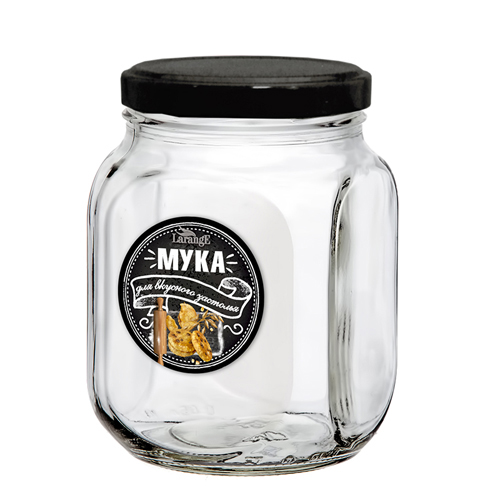 Банка для хранения стекл. 0,65 л с мет. черн. крышкой, МУКА черная 6262509 арт.626-2509