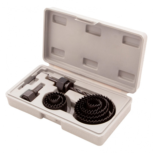 Набор кольцевых пил по дереву Matrix 70473 состоит из 11 предметов и предназначен для вырезания круглых отверстий диаметром 19-64 мм и глубиной до 27 мм. Входящие в комплект коронки подходят для работы по дереву, фанере, пластику, ламинату, гипсокартону, ДСП. Позволяют подготовить поверхность к установке розеток, светильников, выключателей, а также прокладке труб. Коронки устанавливают на электродрель. В комплект поставки входит специальная проставка для защиты пилы от проворачивания. Набор пригодится во время ремонта и будет полезен в быту.