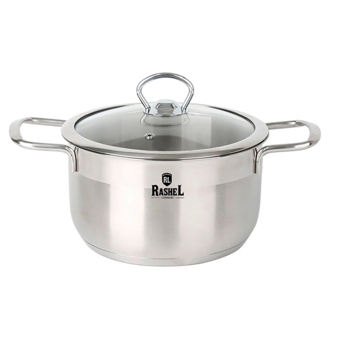 Кастрюли торговой марки "RASHEL" выполнены из высококачественной нержавеющей стали (18/10 - соотношение хром/никель). Кастрюли удобны в использовании, за ними легко и просто ухаживать. Многослойное капсульное дно равномерно распределяет тепло и долгое время сохраняет достигнутую температуру, тем самым обеспечивает равномерный нагрев и равномерную подачу тепла во внутрь кастрюли.
