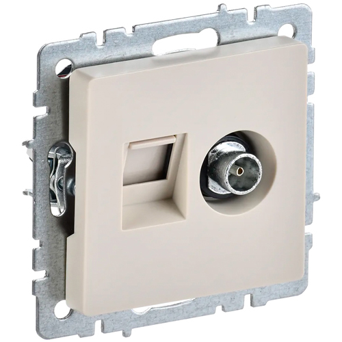 Розетка двойная TV+RJ45 IEK BRITE РТВ/РК12-БрКр категория 5E бежевый BR-AK20-1-K10