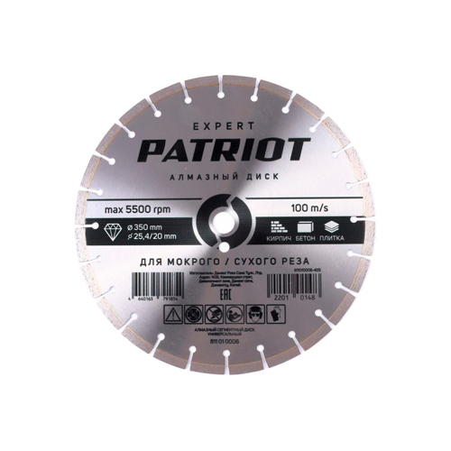 Диск Patriot Expert алмазный сегментный 350х25,4/20 универсальный (811010006)
