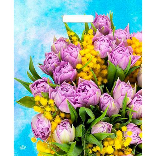 Пакет с вырубной ручкой 38х45+6 (60) Тико (Сиреневые тюльпаны) Глянцевый ВУР51807