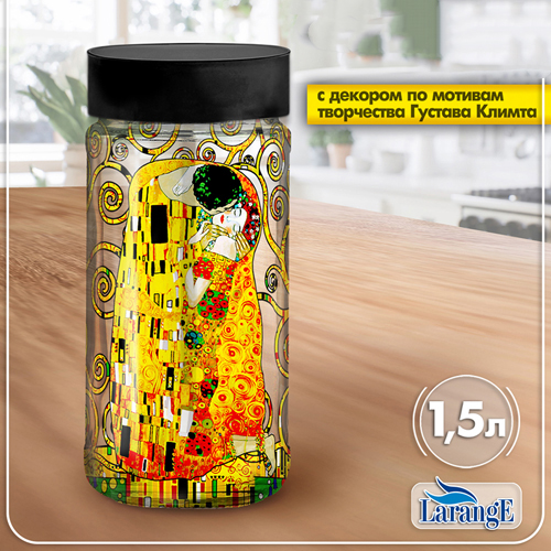 Банка для сыпучих продуктов Larange МАЯК декор. ПОЦЕЛУЙ, 1,5 л крышка черная арт.01025-00001