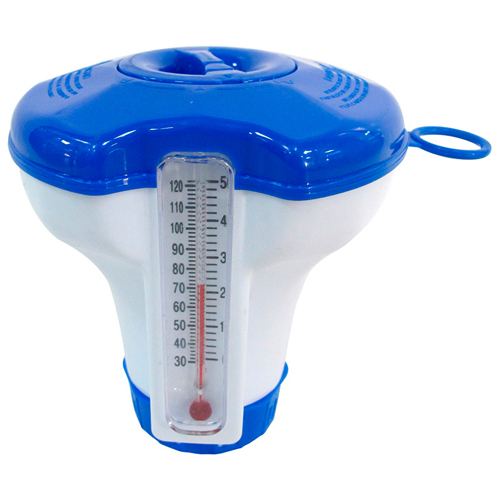 Плавающий дозатор диаметром 5 дюймов (12,7 см) для химических таблеток диаметром 1 дюйм (2,54 см).