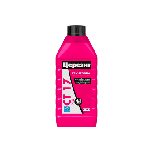Грунтовка CT 17 PRO предназначена для обработки поверхностей перед нанесением штукатурных и напольных смесей, плиточных клеев и т.д.