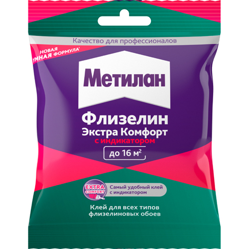 Клей обойный Метилан Флизелин Экстра Комфорт c индикатором, пакетик 90 гр 3000300