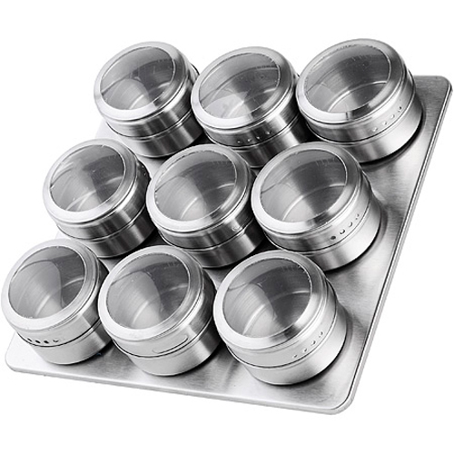 Набор 10 предметов: баночки для специй на магните - 9 шт, подставка - 1 шт.