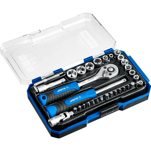 Универсальный набор инструментов ЗУБР 27642-H35_z01, предназначен для монтажа и демонтажа резьбовых соединений при ремонте автомобилей и других изделий.