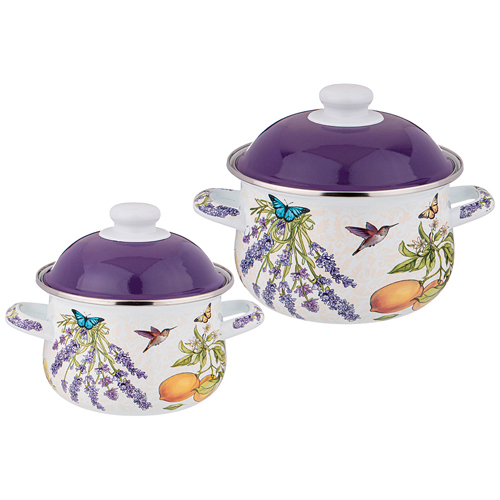 Набор кастрюль agness эмалированных серия "Прованс лимоны", 4пр. 1,5л и 2,8л, 934-700