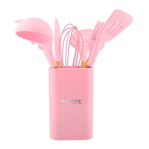 Кухонные принадлежности изготовлены из высококачественных материалов: силикона и натурального дерева, что делает их безопасными для здоровья и практичными для использования. Силикон выдерживает температуру до 230 градусов, не впитывает запахи. Отлично подойдет для посуды с антипригарным покрытием, не оставляет царапины на поверхности. Рукоятка предметов выполнена из натурального дерева, на которую нанесен логотип «KUKMARA». Имеет отверстие для тех, кто предпочитает размещать приборы в подвешенном состоянии.
