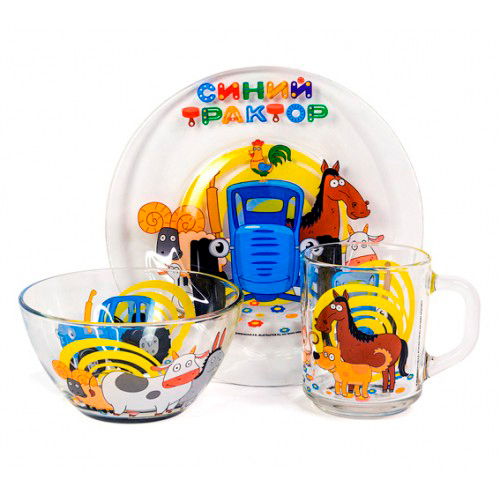 Набор "СИНИЙ ТРАКТОР" 3 пр.: кружка 250 мл, салатник 13 см, тарелка 19,5 см в под.уп. арт.СТН3-1