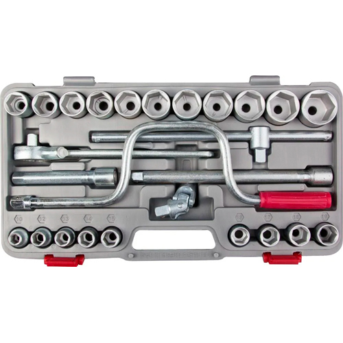 Комплектация: Головки торцовые: 10, 11, 12, 13, 14, 15, 17, 19, 22, 24, 27 мм - 11 шт. Трещотка 1/2" - 1 шт. Пластиковый кейс - 1 шт.