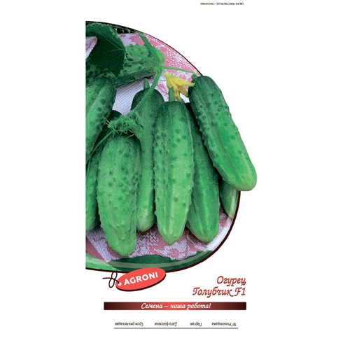 Среднеранний (42-45 дней) пчелоопыляемый гибрид. Растение сильнорослое, ветвистое. Зеленец овально-цилиндрической формы, зеленый со светлыми полосами до 1/3 длины плода. Поверхность плодов матовая, крупно-бугорчатая, бугорки редко расположены. Длина зеленца 9-12 см. Диаметр 3,4-4,0 см. Масса плода 80-95 г. Урожайность до 6 кг/кв.м. Комплексная устойчивость к мучнистой росе, пероноспорозу, ВОМ №1 и угловатой бактериальной пятнистости. Схема посева в открытом грунте 30х40 см.