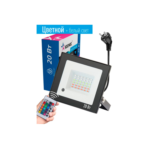 Светодиодный RGB прожектор Космос 20 Вт предназначены для декоративного освещения архитектурных объектов, фасадов зданий, сооружений, памятников, создания световых эффектов, фоновой подсветки. Прожектор управляется с помощью радиоканального пульта ДУ и имеет 12 разных цветов света, отдельный режим белого света, возможность диммирования. Свет может быть как статичным (любого выбранного цвета), так и переключать цвета - встроено 4 разных режима переключения. Прожекторы можно объединять в группы - до 10 прожекторов на один пульт. Служат до 40 000 часов. 2 года гарантии. Широкий угол света 120 градусов и регулируемая лира-крепление (поворачивается под углом до 180 градусов).