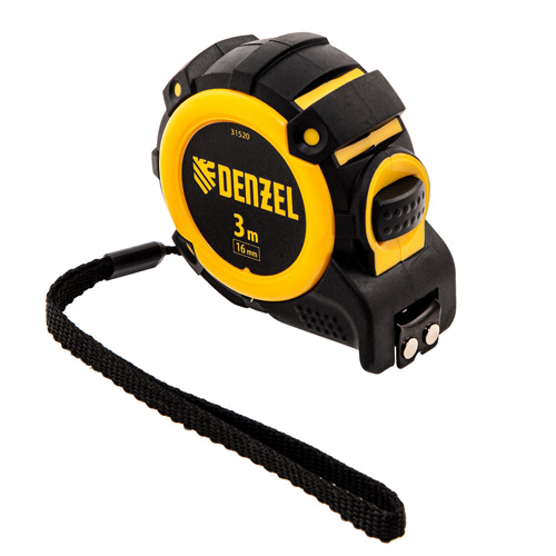 Рулетка Denzel 31520 с автоматической фиксацией полотна размером 3 м х 16 мм, с нейлоновым покрытием, магнитным зацепом и двухсторонней разметкой, предназначена для измерения расстояний и определения габаритов различных предметов. Лента автоматически фиксируется в вытянутом положении, что упрощает работу. Рулетка будет полезна во время строительных и ремонтных работ.