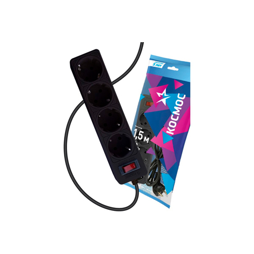 Сетевой фильтр КОСМОС 1,5м 4 гнезд, пвс 3х0,75мм2, черный FKsm1.5m-4g(B)