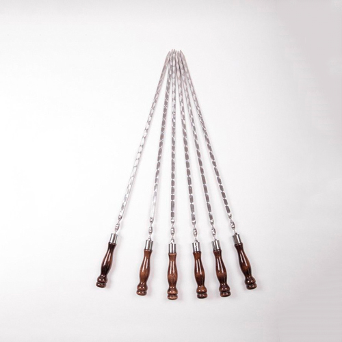Шампур металлический прямой с узором из нержавеющей стали с деревянной лакированной ручкой «Кольцо».