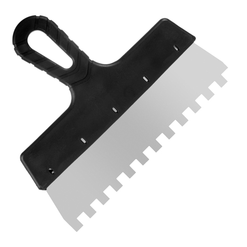 Материал: нержавеющая сталь, пластиковая рукоятка, квадратный зуб. Толщина стали – 0,4 мм. Применение: для нанесения клеевых составов, цементных монтажных смесей при укладывании кафельной плитки, приклеивании стеновых панелей.