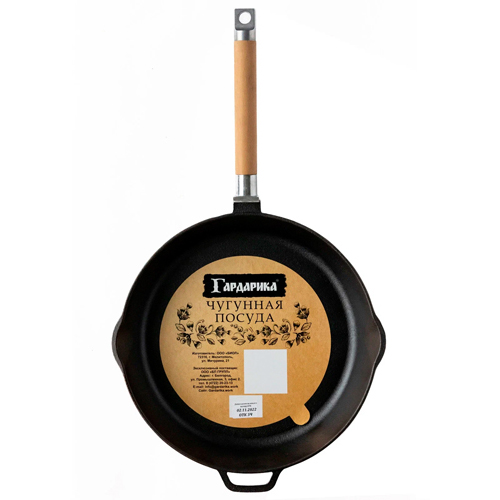 Сковорода чугунная со съемной деревянной ручкой и двумя сливами, 24см, ТМ ГАРДАРИКА, 0224
