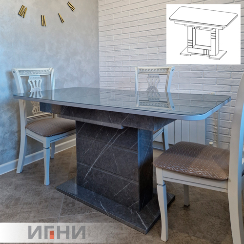 Стол Игни Триумф 1240*750/300 (руч мех) фотопечать серый, подстолье серый мрамор (287)