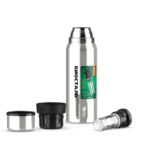 Термос "BIOSTAL-ОХОТА" у/г NBR-750Z, 2 чашки, пробка с ситечком БИОСТАЛЬ