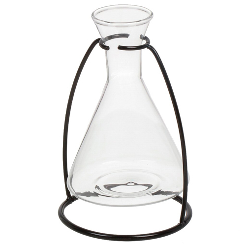 Ваза стекло, 20х13 см, 1 цветок, Y6-10074, колба, металическая подставка (462502) (уценка 5%)