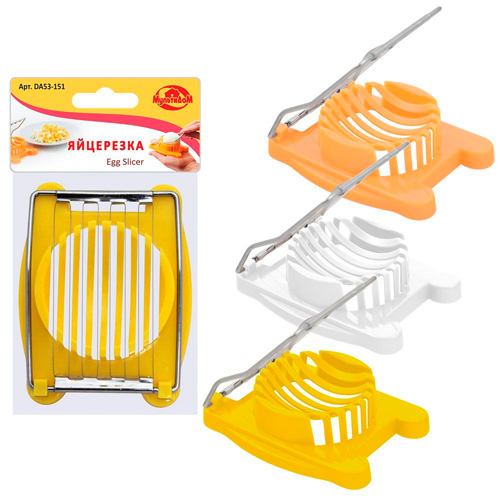Используется во время приготовлении пищи. С помощью этого приспособления Вы сможете быстро и легко нарезать вареные яйца в салат, для заливного, а также для украшения различных блюд. Изготовлено из пластмассы (полипропилен), струны из коррозионностойкой стали. После приминения промыть мягкой щеткой или губкой, можно с использованием жидких моющих средств.